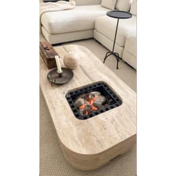 Serving Marble Table with Charcoal Grill - 120x60x40 cm - Beige By Alhome - 110110140